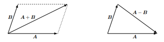 ベクトルの和や差は下の図に示すように二つのベクトルで作られる平行四辺形の対角線で表されるベクトルになります。